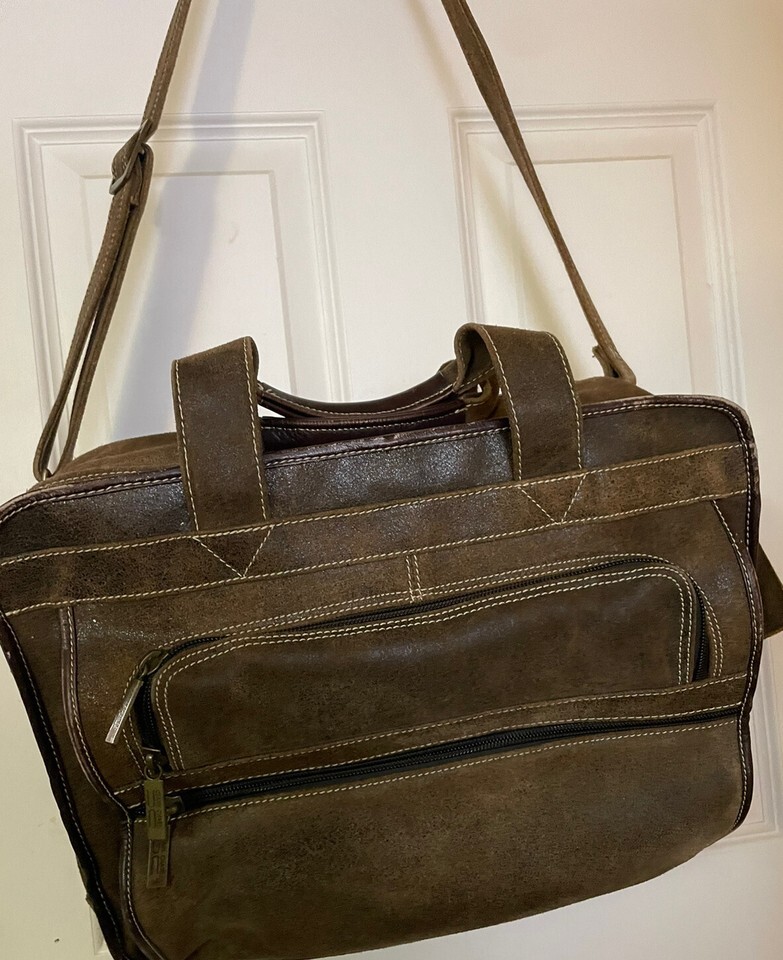 - Authentic Vtg Claire Chase Distressed Leather Briefcase Saddle Messenger Bag