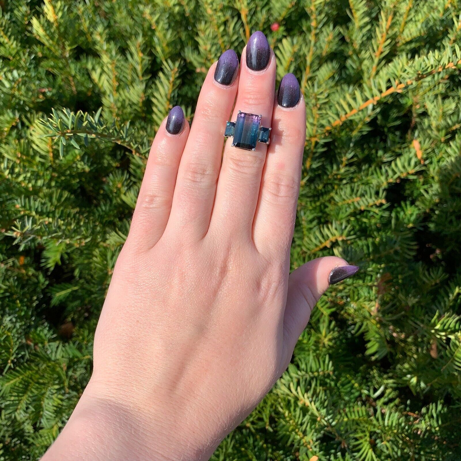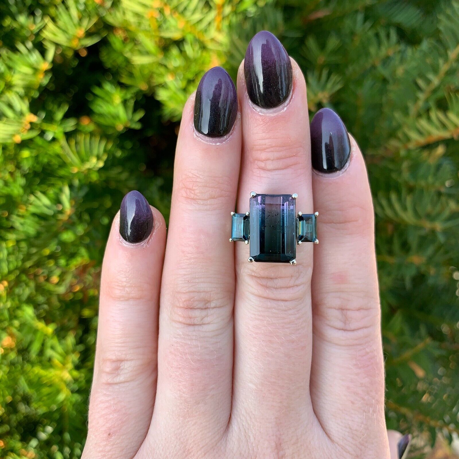 14k Gold 8.07 Carat Bi-Color Teal Purple Genuine Natural Tourmaline Ring #J6986