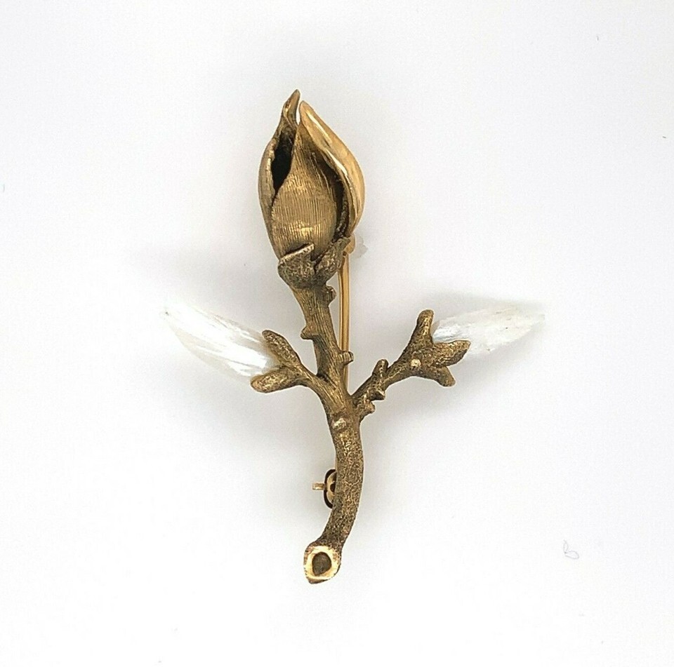 14k Yellow Gold Freshwater River Pearl Magnolia Branch Pin (#J5574)