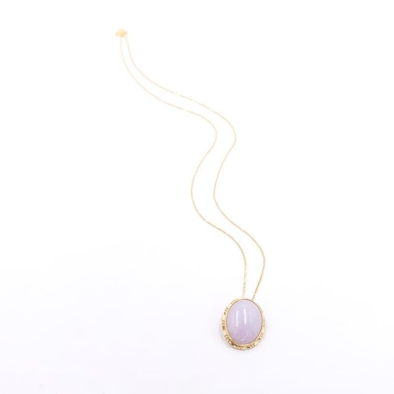 Authenticity Guarantee 14k Yellow Gold Light Lavender Jade Jadeite Pendant w...
