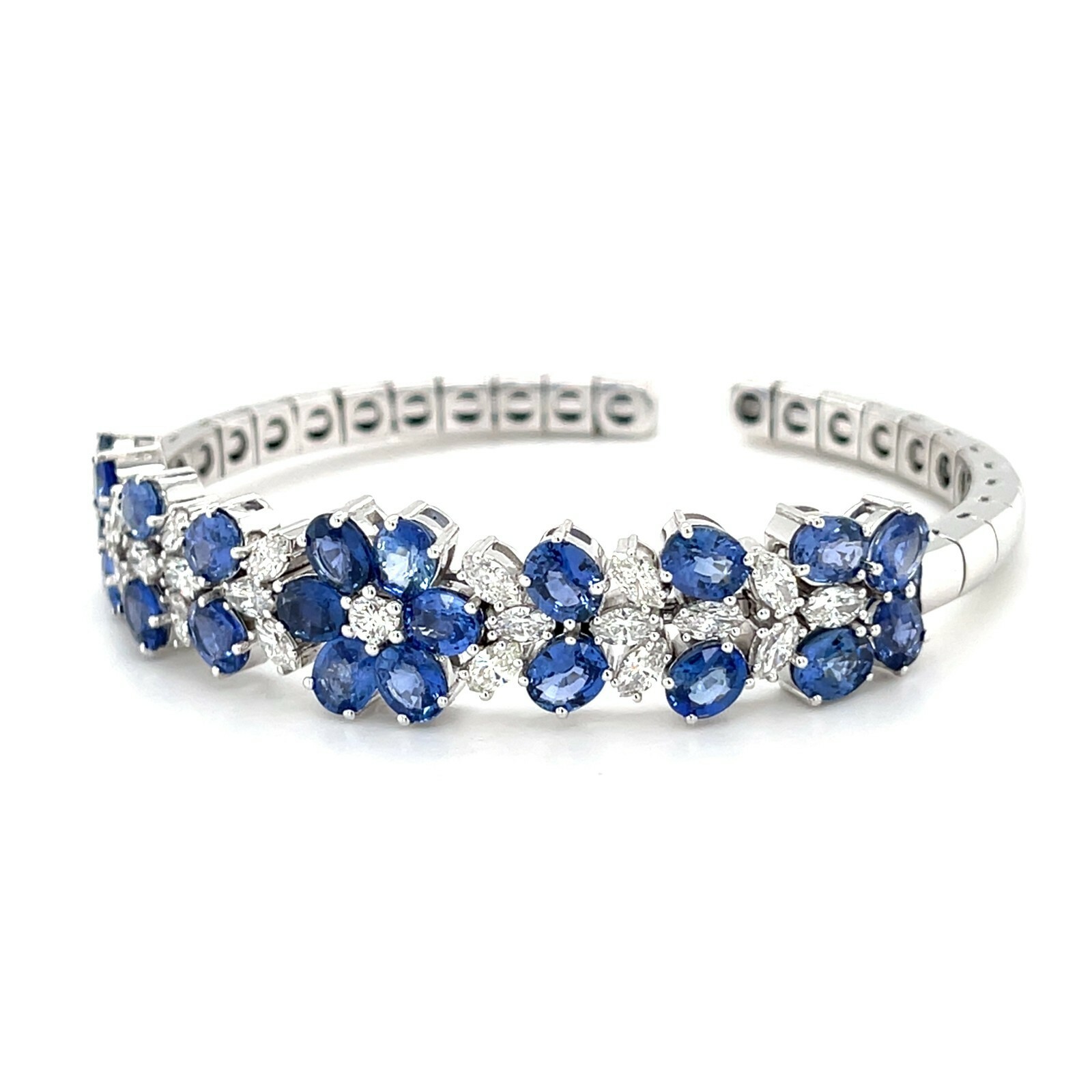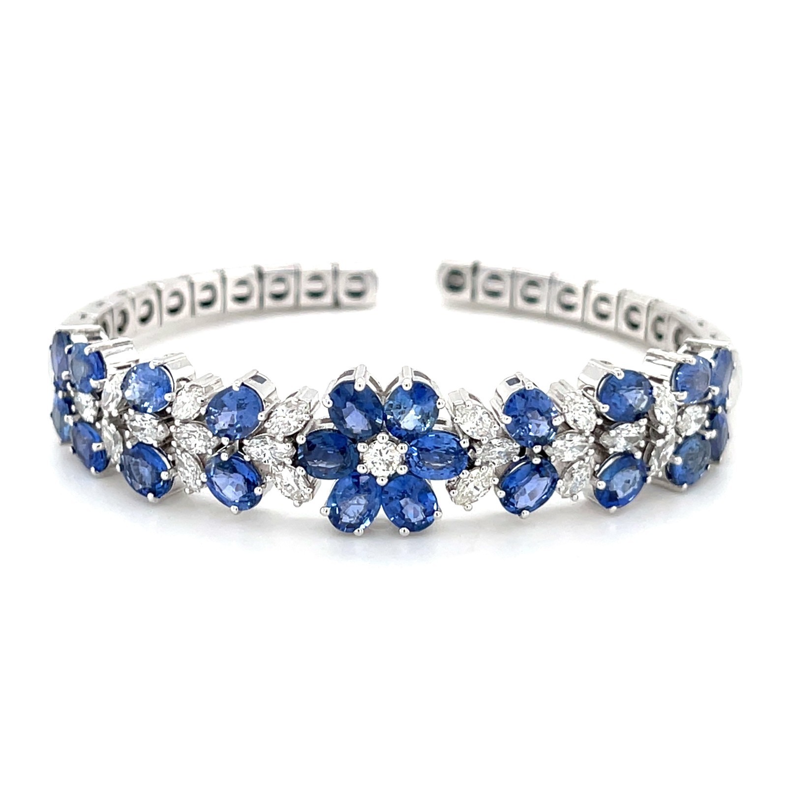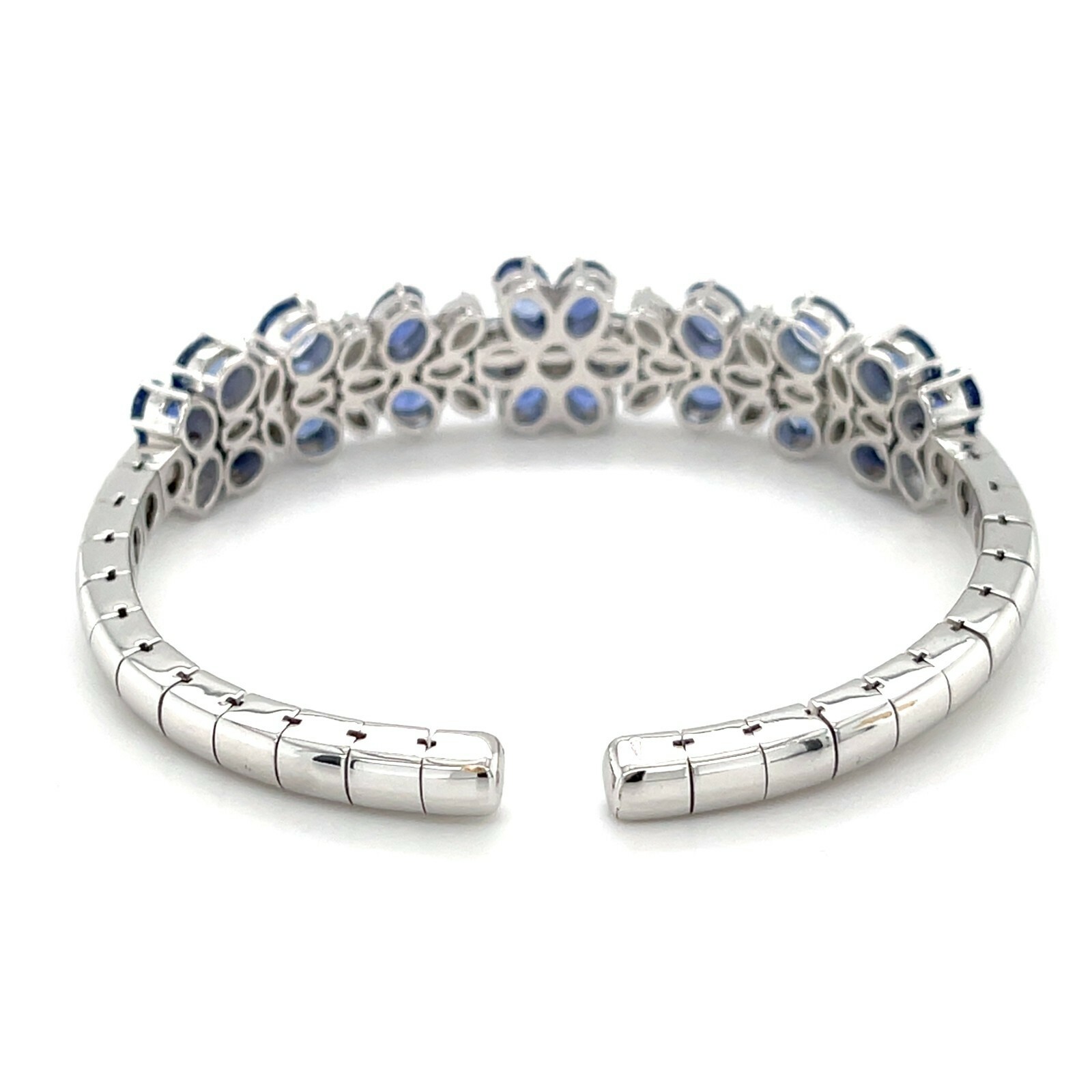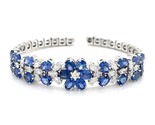 Beautiful White Gold Cuff Bracelet Featuring 12 cts Ceylon Sapphire Flowers with 3.50 cts Diamond Accents