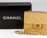 - Authenticity Guarantee Chanel Mini Classic Flap Shoulder Bag Beige Quilted L...