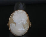 - Authenticity Guarantee LARGE YELLOW GOLD & CARVED SHELL CAMEO RING SIZE 7.25...