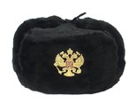 Authentisch Russisch Militar Schwarz Ushanka Hut Sowjet Imperial Adler Abzeichen