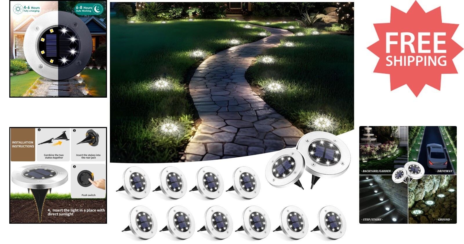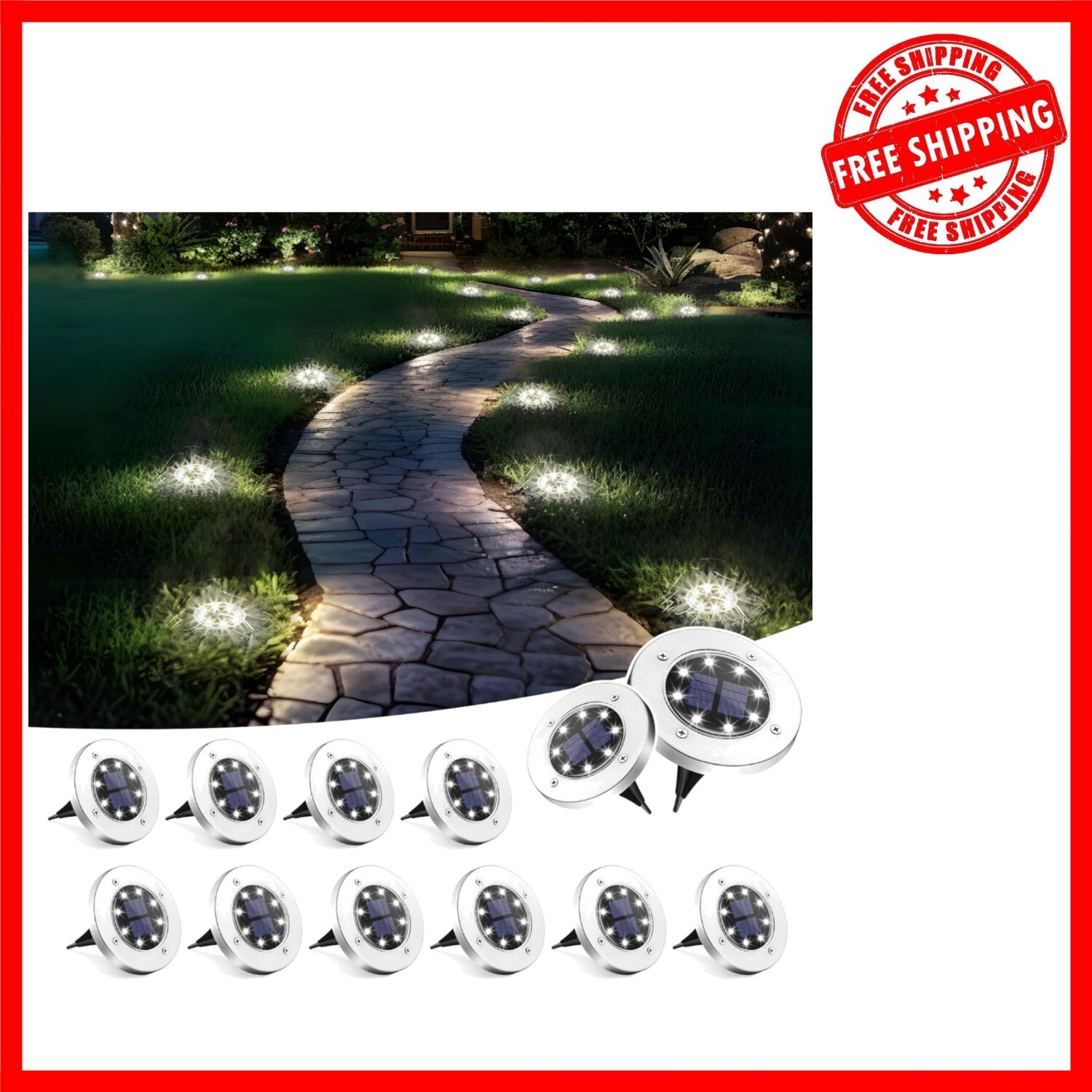 Auto-Dimming Solar Disk Lights - Eco-Friendly 12-Pack for Pathway Garden