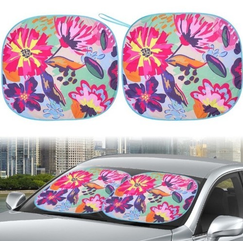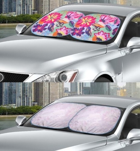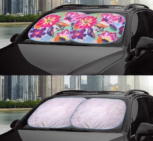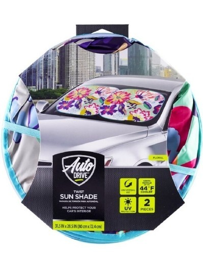 This Sale is for Two (2) Auto Drive Sun Shades Auto shade FLORAL Pattern Each shade measures approximately 28.5" x 31.5" Durable construction Universal fit for most cars ~ SUV's ~ vehicles Twist Sun Shade will protect your vehicles interior from high temperatures UV rays Simple instructions ~ open and press shade against windshield ~ pull down visor to hold shade in place Foldable for storage in your vehicle Sun Shade is new in original packaging Please view photos for a good description of this item Thank you!