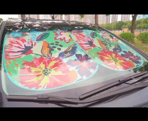 Auto Drive ~ Twist Sun Shade ~ FLORAL ~ 28.5'' x 31.5'' ~ Universal Fit ~ 2 Pcs.