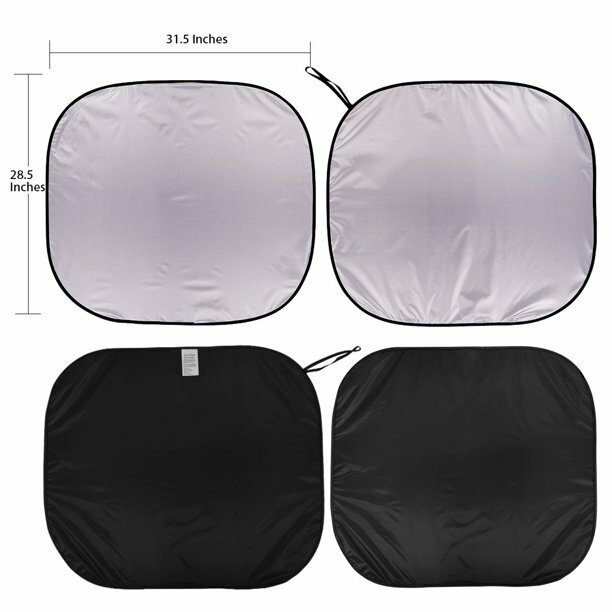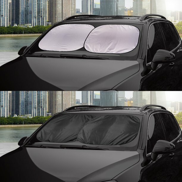 This Sale is for Two (2) Auto Drive Sun Shades Auto shade Silver/Black Each shade measures approximately 28.5" x 31.5" Durable construction Universal fit for most cars ~ SUV's ~ vehicles Twist Sun Shade will protect your vehicles interior from high temperatures UV rays Simple instructions ~ open and press shade against windshield ~ pull down visor to hold shade in place Foldable for storage in your vehicle Sun Shade is new in original packaging Please view photos for a good description of this item Thank you!
