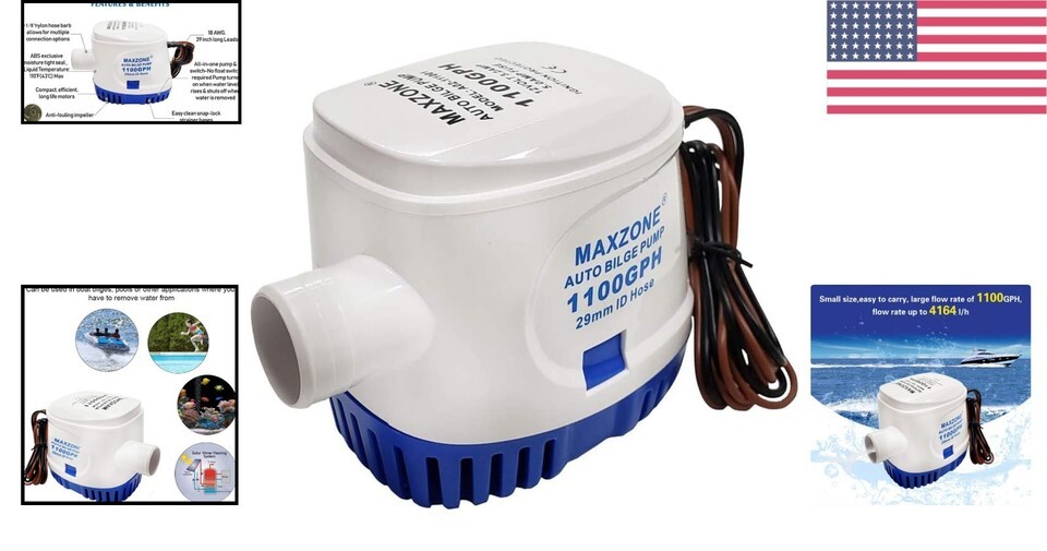 - Automatic Submersible Boat Bilge Pump 12V 1100GPH with Float Switch - Compact