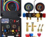 - Automotive 4 Valve AC Manifold Gauge with 5Ft Hoses, Quick Couplers, Adapters, P