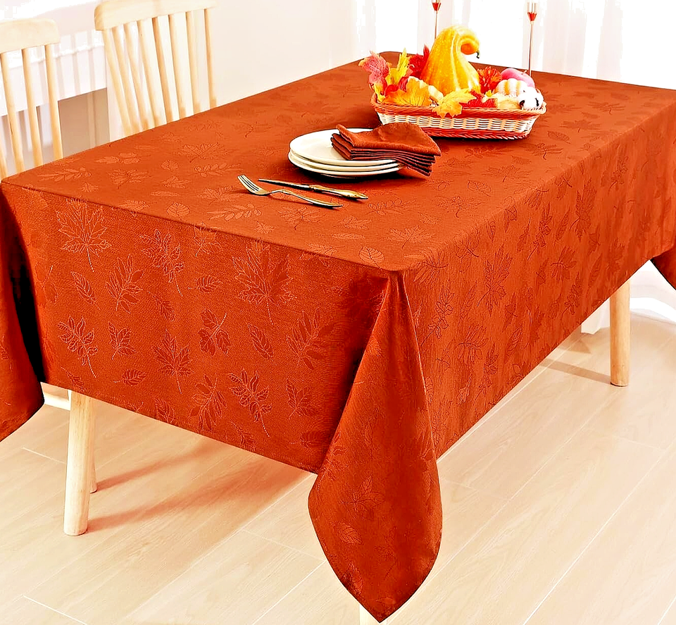 Autumn Leaves Thanksgiving Tablecloth – Rust Jacquard Damask Fabric 60x84” Fall Decor