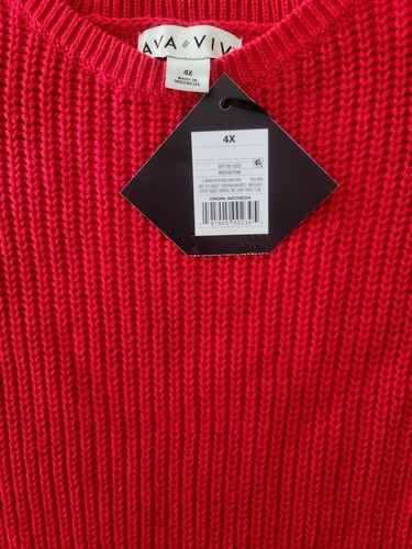 This sale is for one (1) Ava Viv? Women's Sweater Tank Pullover Sweater Tank Women's Plus Size 4XL Measures approximately 25" armpit to armpit Measures approximately 34" shoulder seam to hem Red in color Sleeveless 100% Cotton Ribbed ~ Straight Hem Length @ Hip Crewneck Machine wash - Tumble dry Top is brand new ~ never worn Please view photos for a good description of this item Thank you!