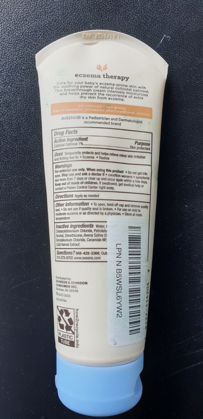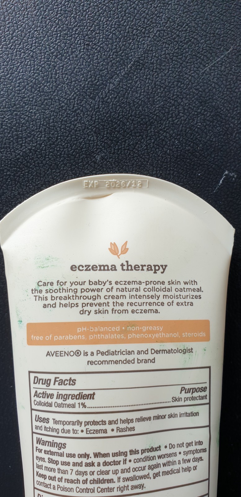 Aveeno Baby Eczema Therapy Moisturizing Cream for Dry Itchy Skin (7.3 Oz) Description Aveeno Baby Eczema Therapy Moisturizing Cream for Dry Itchy Skin (7.3 Oz). Product Detail ? Brand: Aveeno ? Formulation: Cream ? Volume: 7.3 Oz ? Type: Moisturizing Cream Please message me if you have any questions.