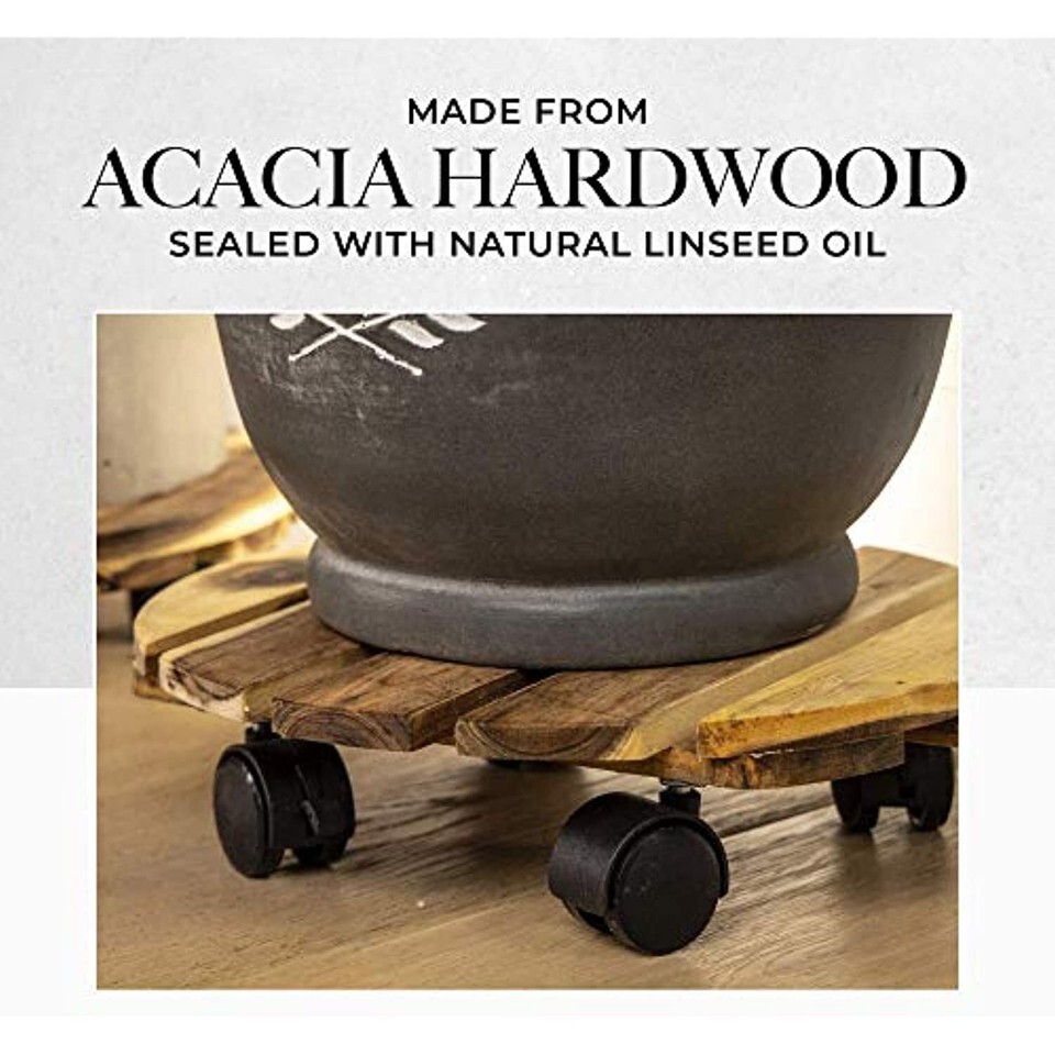 ACACIA WOOD CADDY: Avera Products Wood Plant Caddies are made from durable acacia hardwood and sealed with natural linseed oil for a long-lasting product that ages to a natural golden brown.