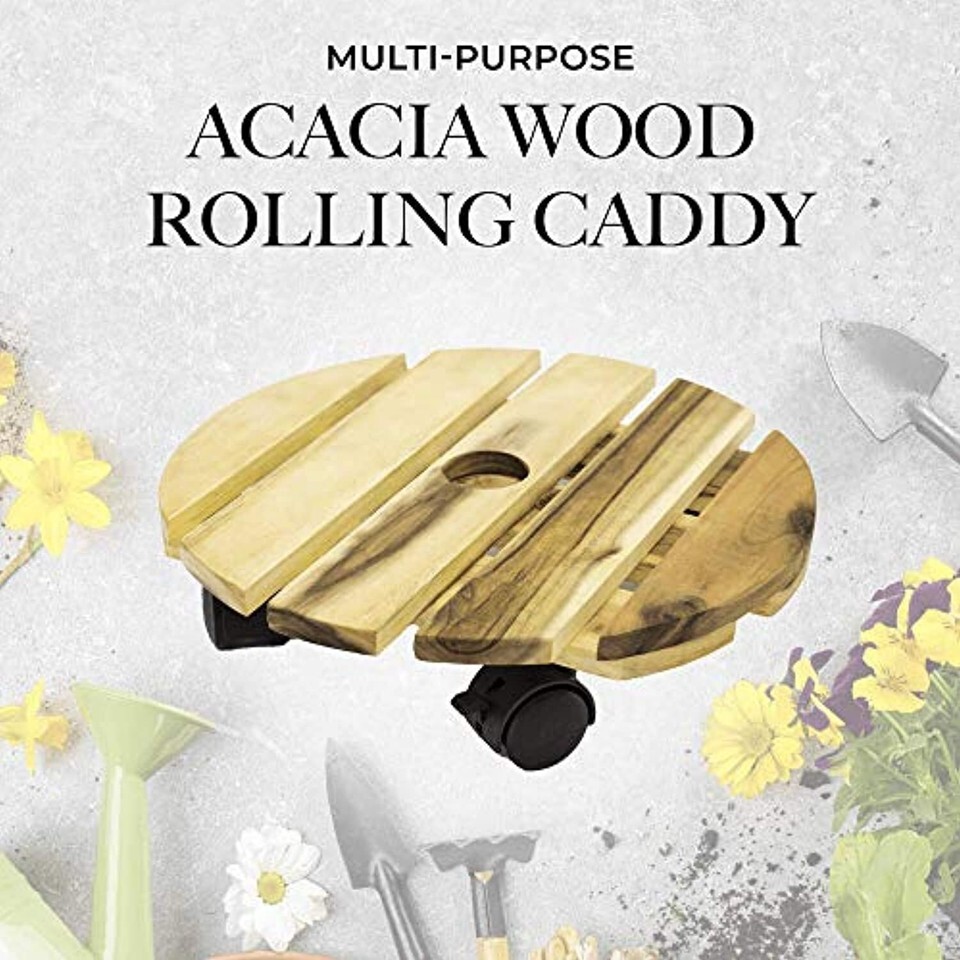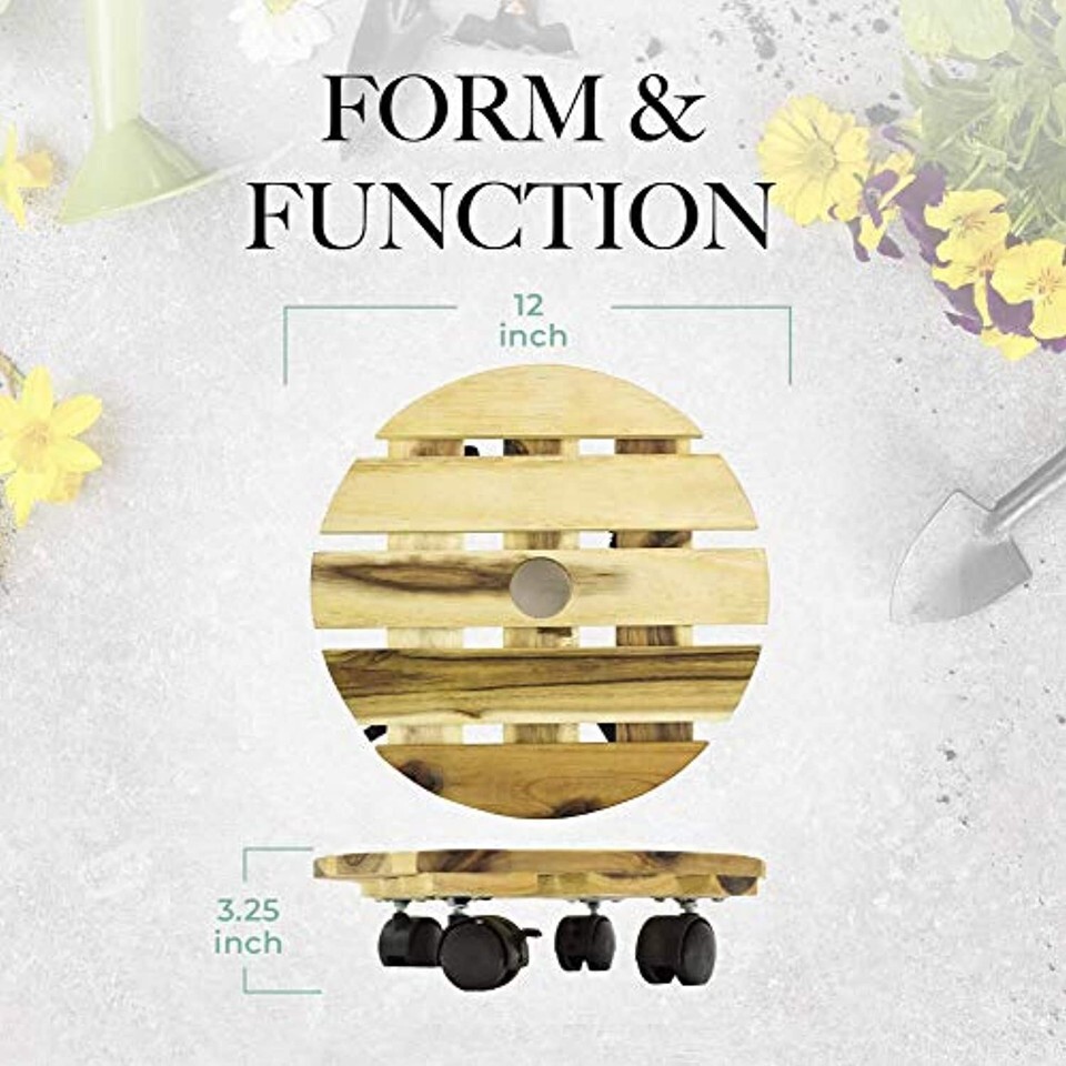 - Avera Products | Round Wood Plant Caddy, Rolling Plant Stand (Single - 12")