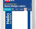 Avery Hello My Name is Name Tags, 2-1/3" x 3-3/8", White 25 Pack