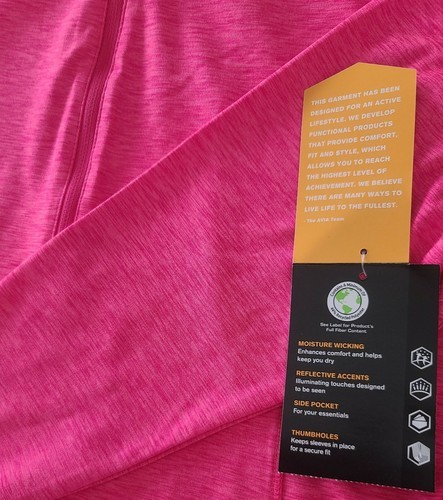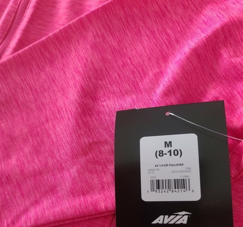 This sale is for one (1) Avia? Brand Textured Heather Top Fuchsia Burst (pink) in color Size Medium (M) (8-10) Measures approximately 19" armpit to armpit Measures approximately 25.5" from center ~ back seam to front hem Measures approximately 26.5" from center ~ back seam to back hem Measures approximately 26" from shoulder sleeve to end of sleeve Simple pullover style top Banded collar Front 1/4 zip closure ~ zipper garage Long sleeves w/thumbholes Two (2) side pockets with reflective accents Curved ~ princess seams Moisture wicking fabric 44% Recycled Polyester ~ 44% Polyester ~ 12% Spandex Top is brand new with tags Please view photos for a good description of this item Thank you!