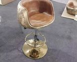 Product description: The Aviator Furniture Bar Stool Chair by INTEROKNACK is a stylish and functional piece of furniture perfect for any room in your home. This bar stool features a pure brass frame with a royal blue color upholstery fabric/Tan brown Faux Leather adding a touch of sophistication to your space. With adjustable and swivel features, this round back bar stool is not only practical but also comfortable. Its 42-inch height adjustable makes it suitable for various seating needs, while its vintage design complements a wide range of interior styles. Imported from India, this bar stool is a unique and eye-catching addition to your home.