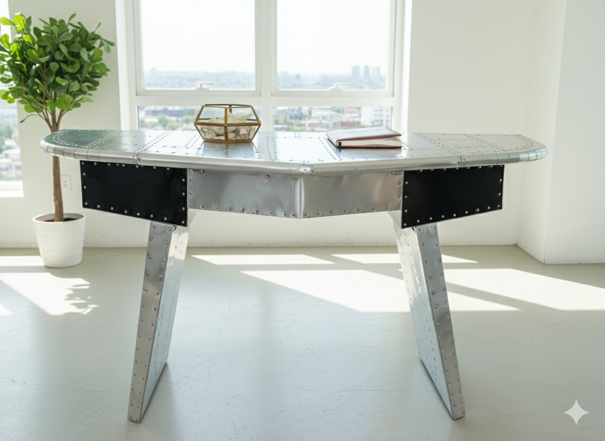 Aviator Executive Jet Wing Desk Polished Aluminum