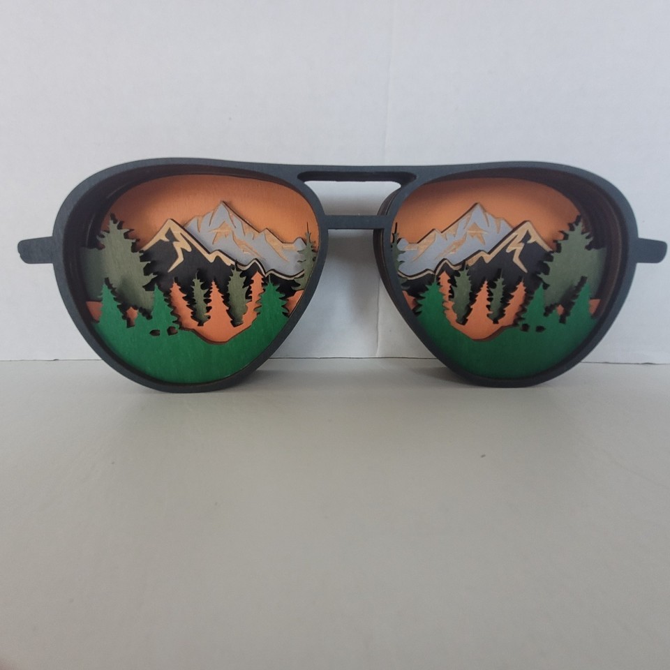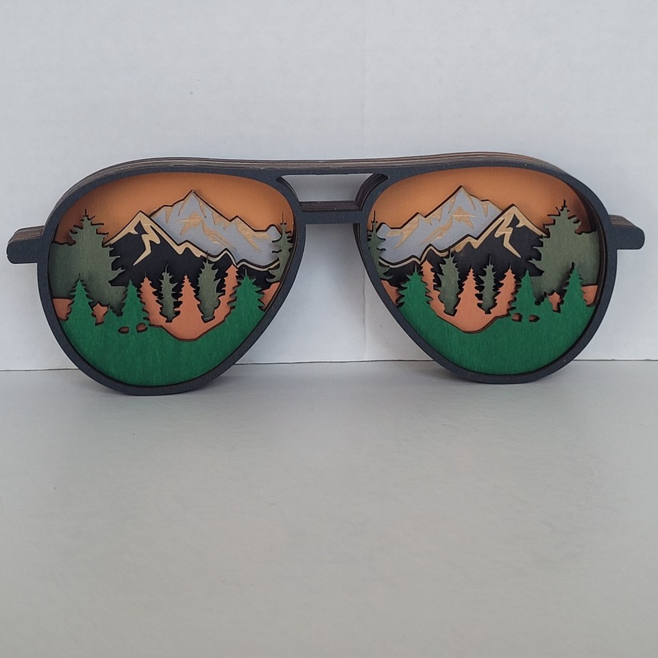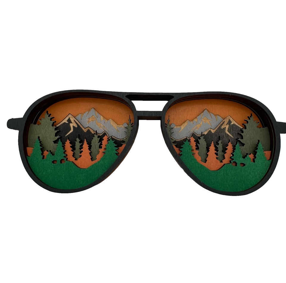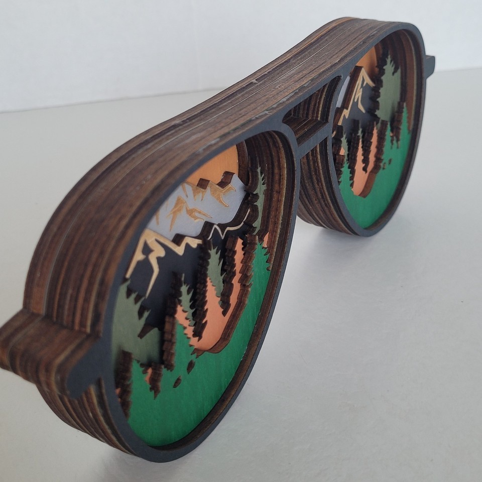 Aviator Sunglasses Handcrafted Layered Wood Wall Art Shelf 3D Scene Laser Cut