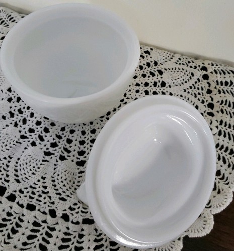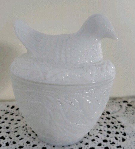 This sale is for one (1) AVON Brand Bowl/Dish White milk glass Measures approximately 5.25" tall Measures approximately 4.25" diameter at top opening Measures approximately 2" diameter at bottom of bowl Nested Hen Figure on top lid Number 14 on the bottom of this piece Many uses ~ sugar bowl ~ candy dish ~ jewelry holder ~ etc... This piece is in very good ~ pre-owned condition with no chips ~ cracks or defects Please view photos for a good description of this item Thank you!