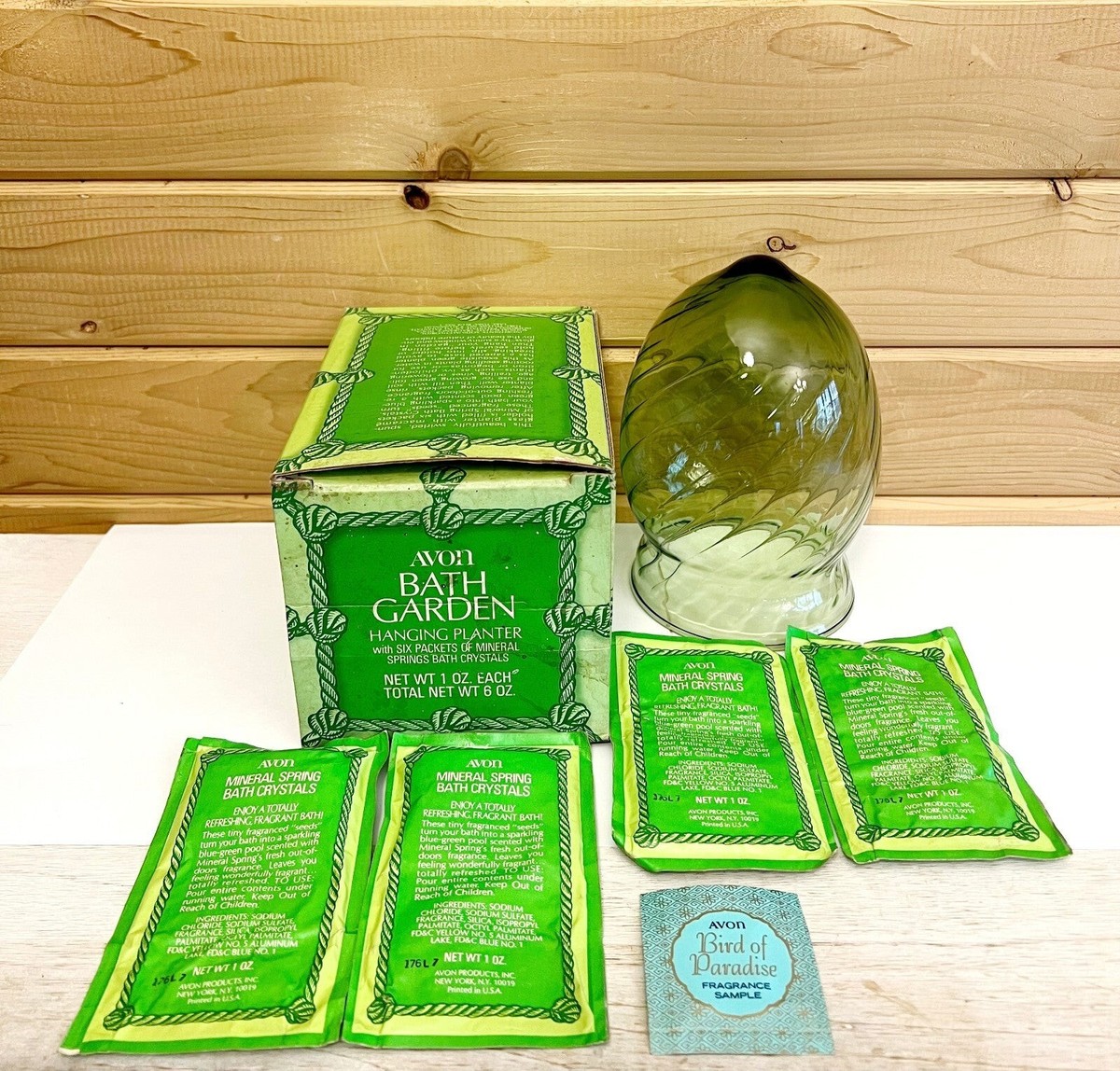 Avon Vintage Bath Garden Hanging Planter w 4 Packets of Minerals 1960s Incomplet