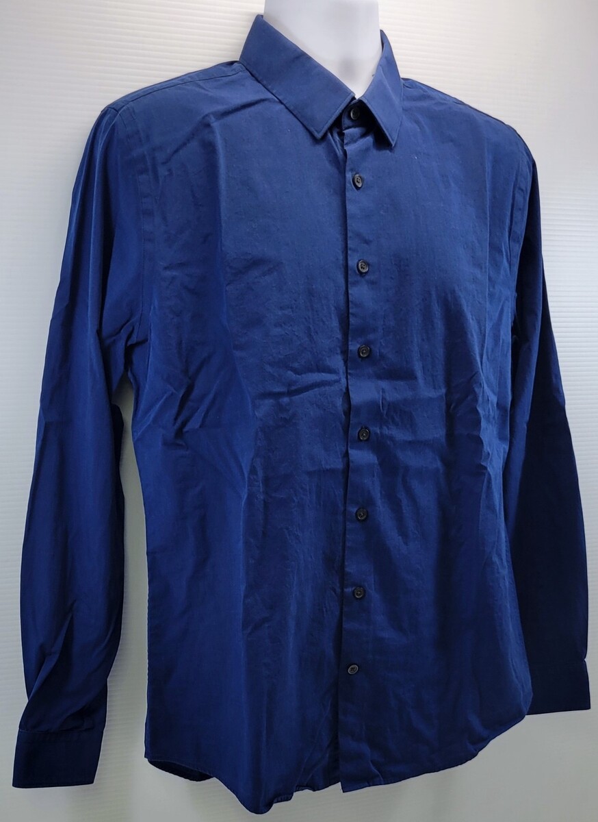 B) Express Men 1MX Extra Slim Blue Button Up Dress Shirt Large
