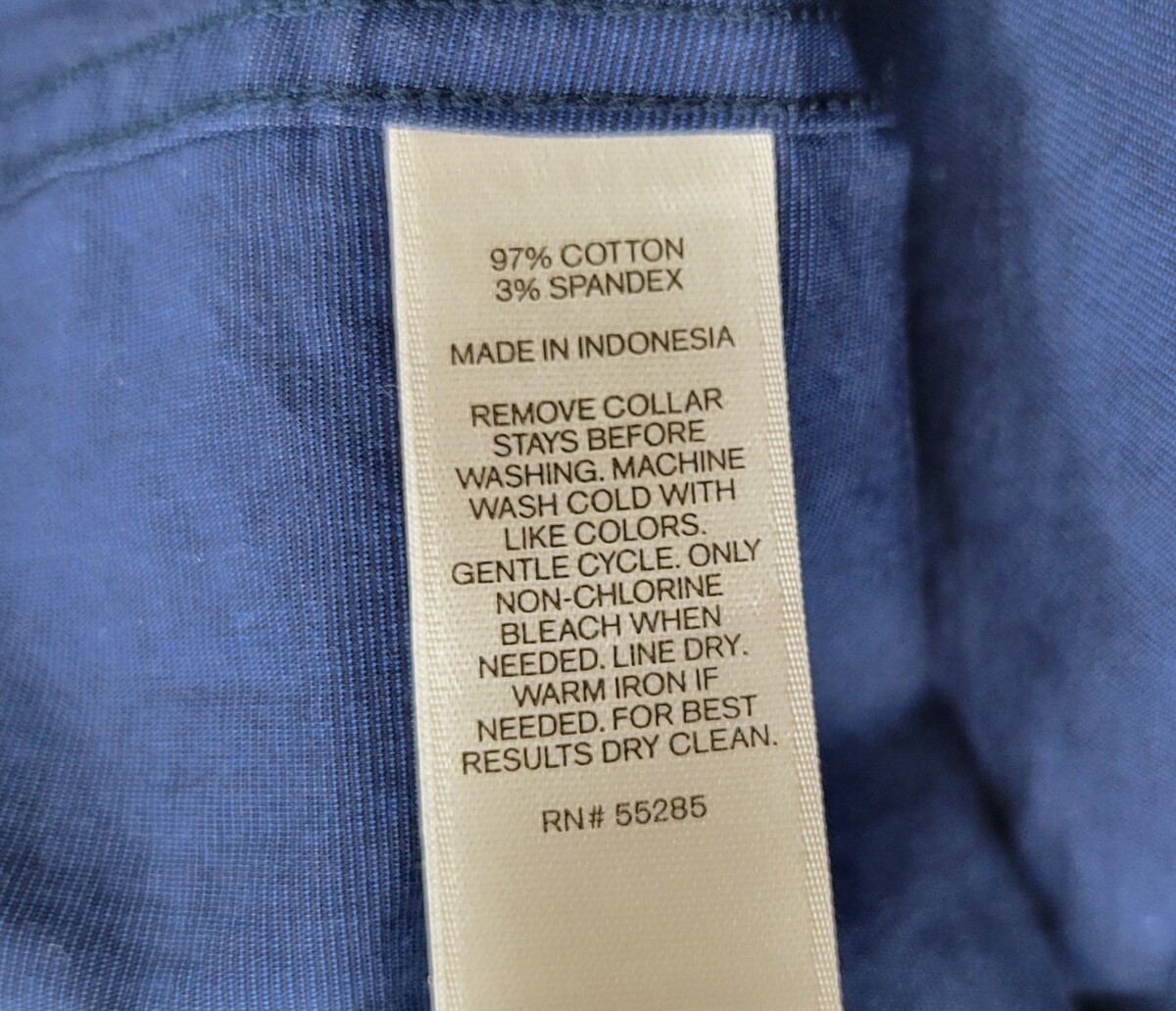 Express Men 1MX Button Up Dress Shirt Extra Slim Solid Blue 97% Cotton 3% Spandex Large Approximate measurements: Shoulder to shoulder - 17" Shoulder to sleeve cuff - 26" Armpit to armpit - 21" Armpit to sleeve cuff - 20" Top of shoulder to bottom back - 28" Shirt is in overall good used condition with some slight fading to sleeve cuffs from office desk use.