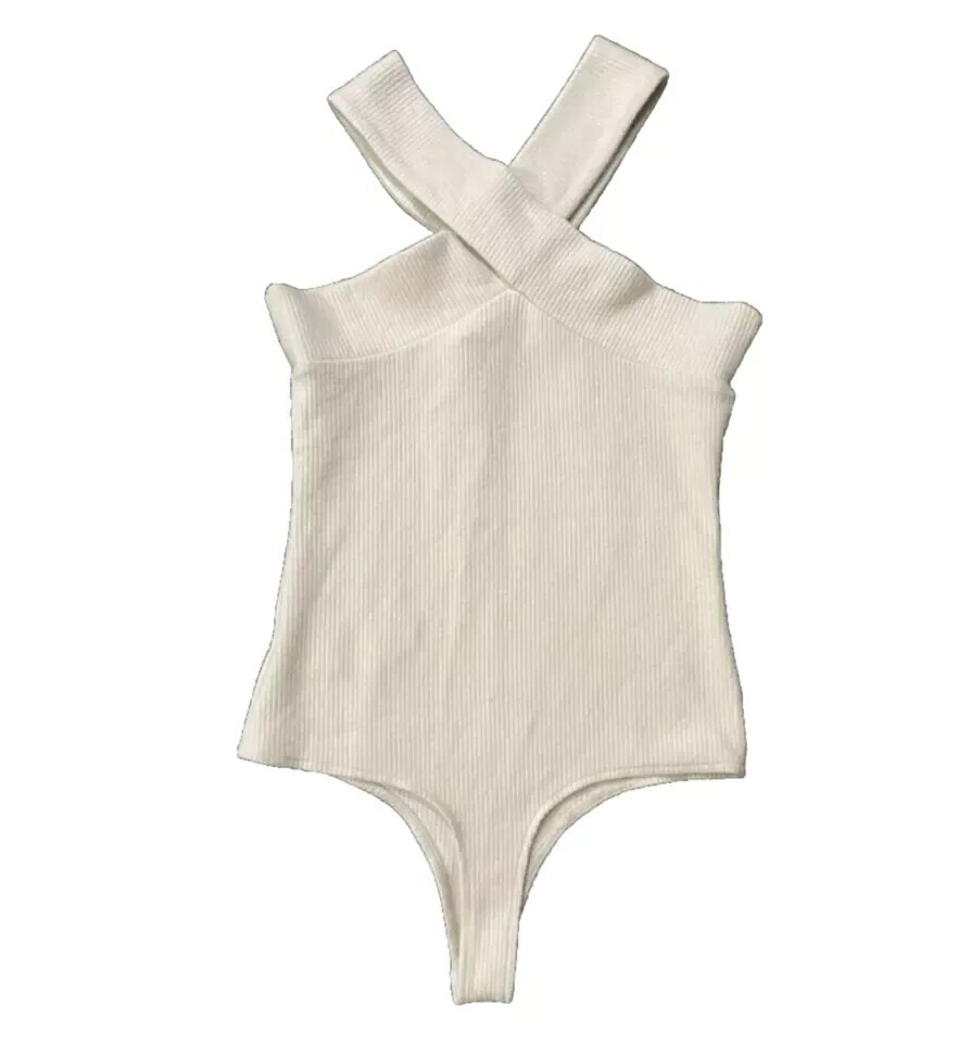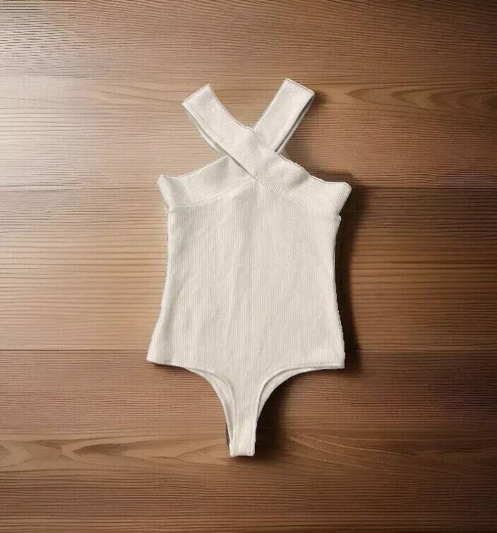 BB Dakota by Steve Madden Bodysuit Women XS Strappy Top One Piece Beige Stretch