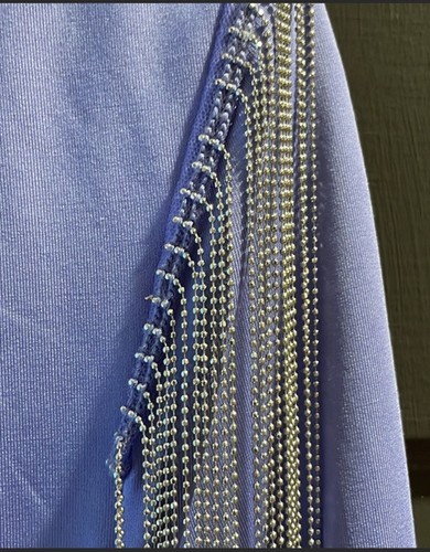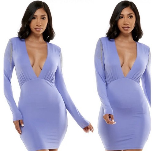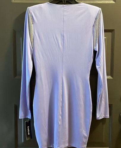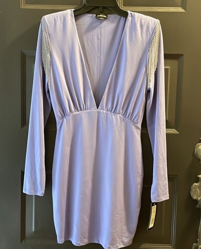 - BEBE Long Sleeve Mini Dress Beaded Fringe Trim Plunge Neckline Medium NEW