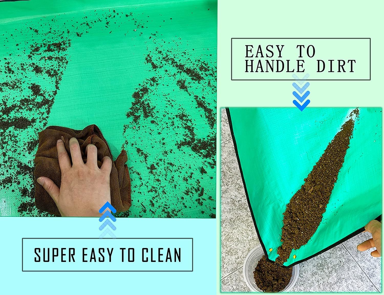 ?Excellent Material?This indoor plant repotting mat is made of high density ECO-friendly material,waterproof,flexible, reusable, wear stain resistant and stain resistant,both side waterproof.
