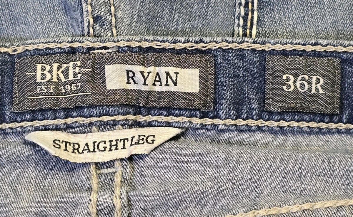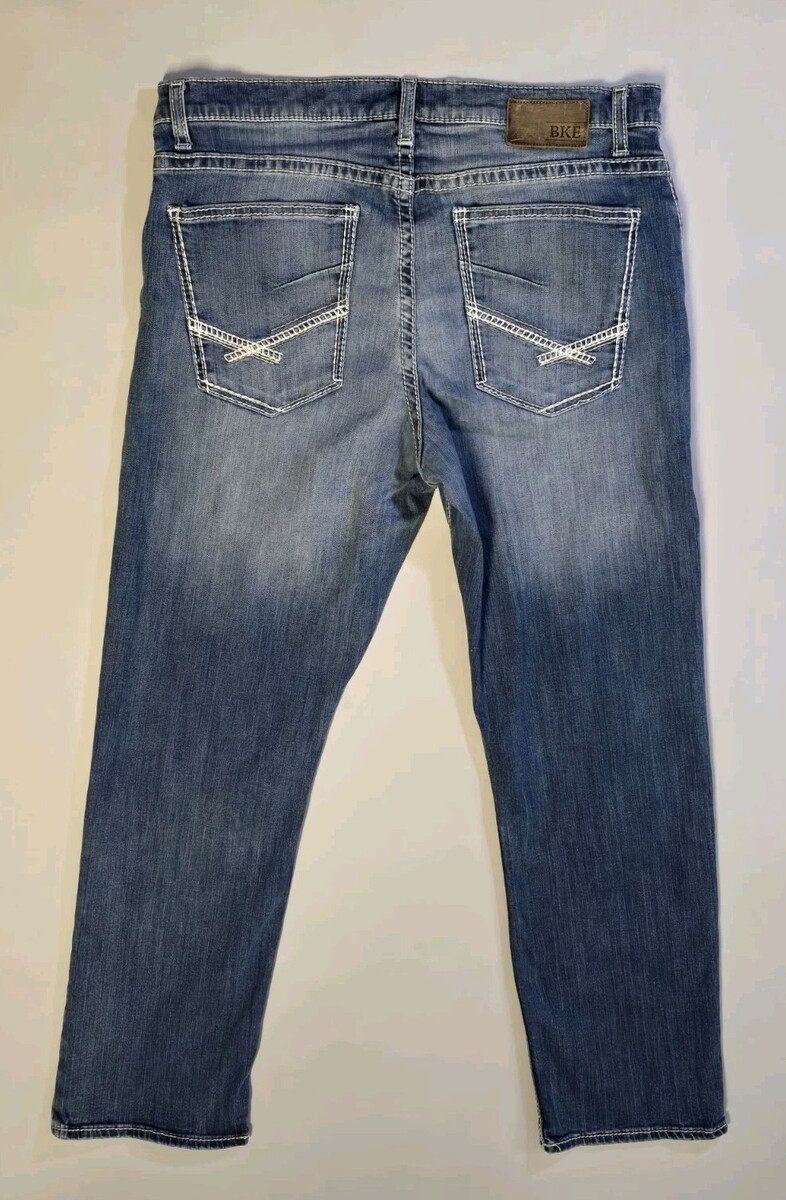Primary image for BKE Ryan Straight Leg Jeans Mens 36R Blue Denim Actual 35x30 Whiskered Stretch