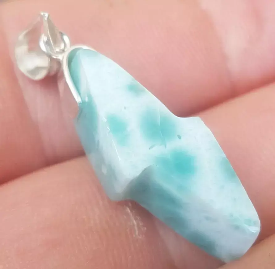 - BLUE larimar handcarved 925 sterling silver Gemstone RAY pendant (l-122)