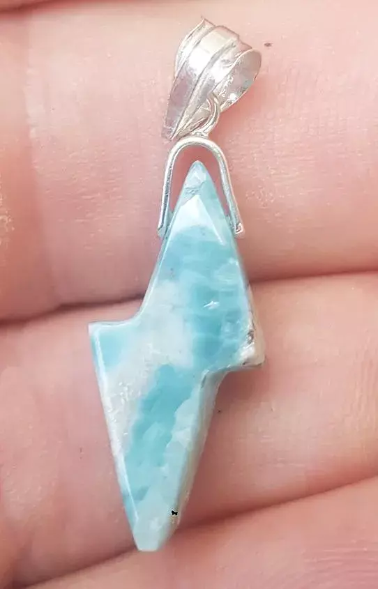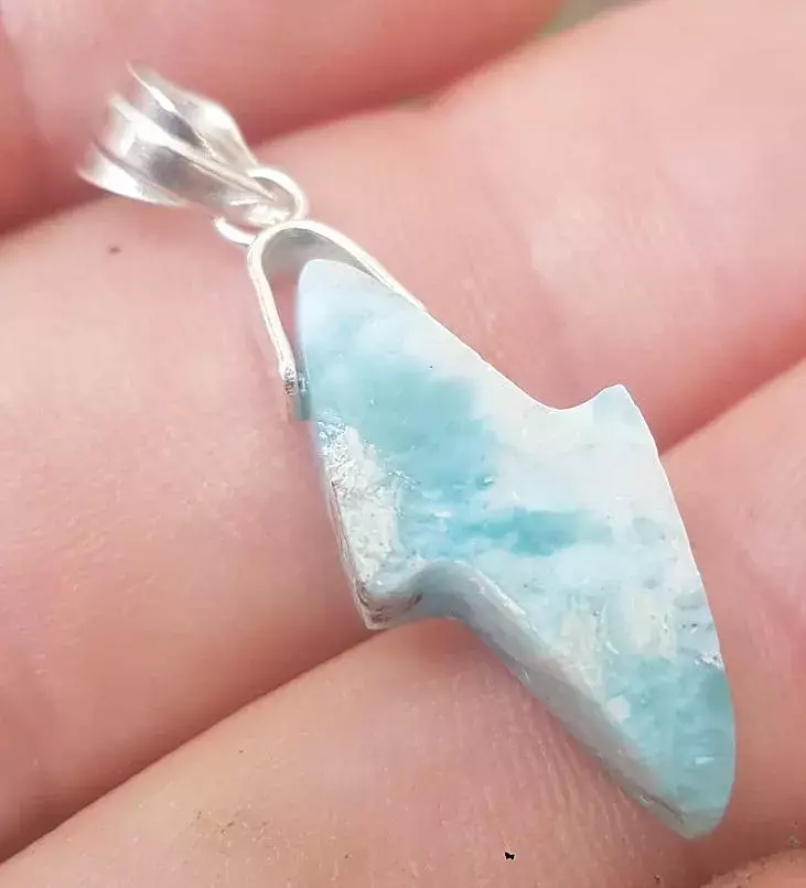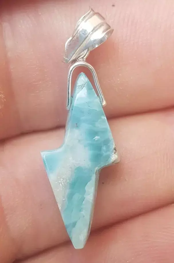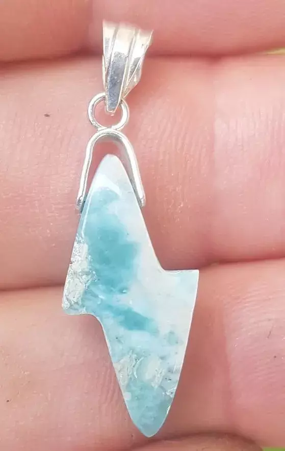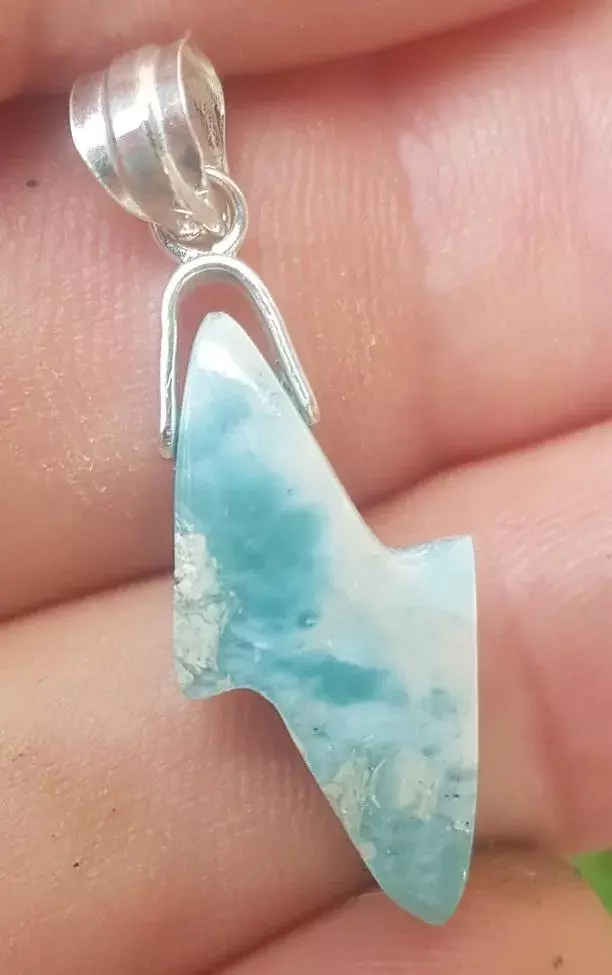 - BLUE larimar handcarved 925 sterling silver Gemstone RAY pendant (l-126)