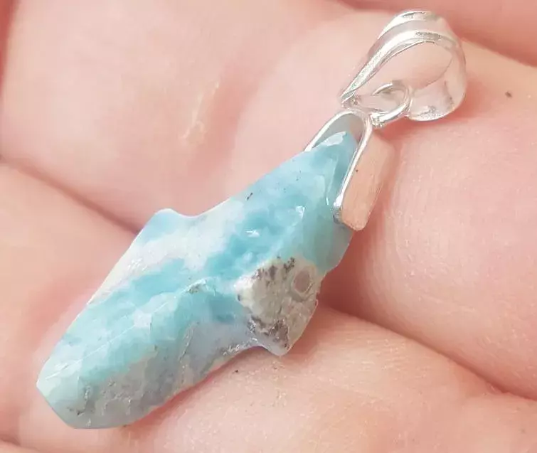 Larimar is a rare variety of pectolite,only found in Dominican Republic. Its specified coloration in a range containing white, light blue,brown, greenish blue and deep blue.