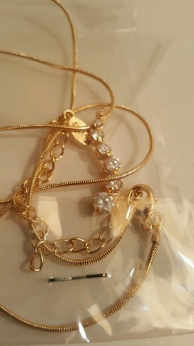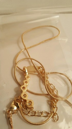 This is a BMNY 17'' gold tone necklace with a crystal pendant and 2'' extender. It is brand new and has never been opened.