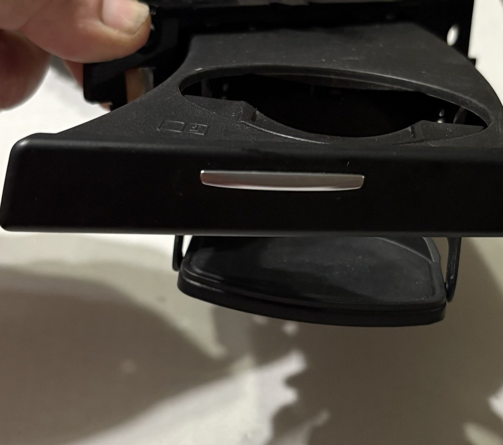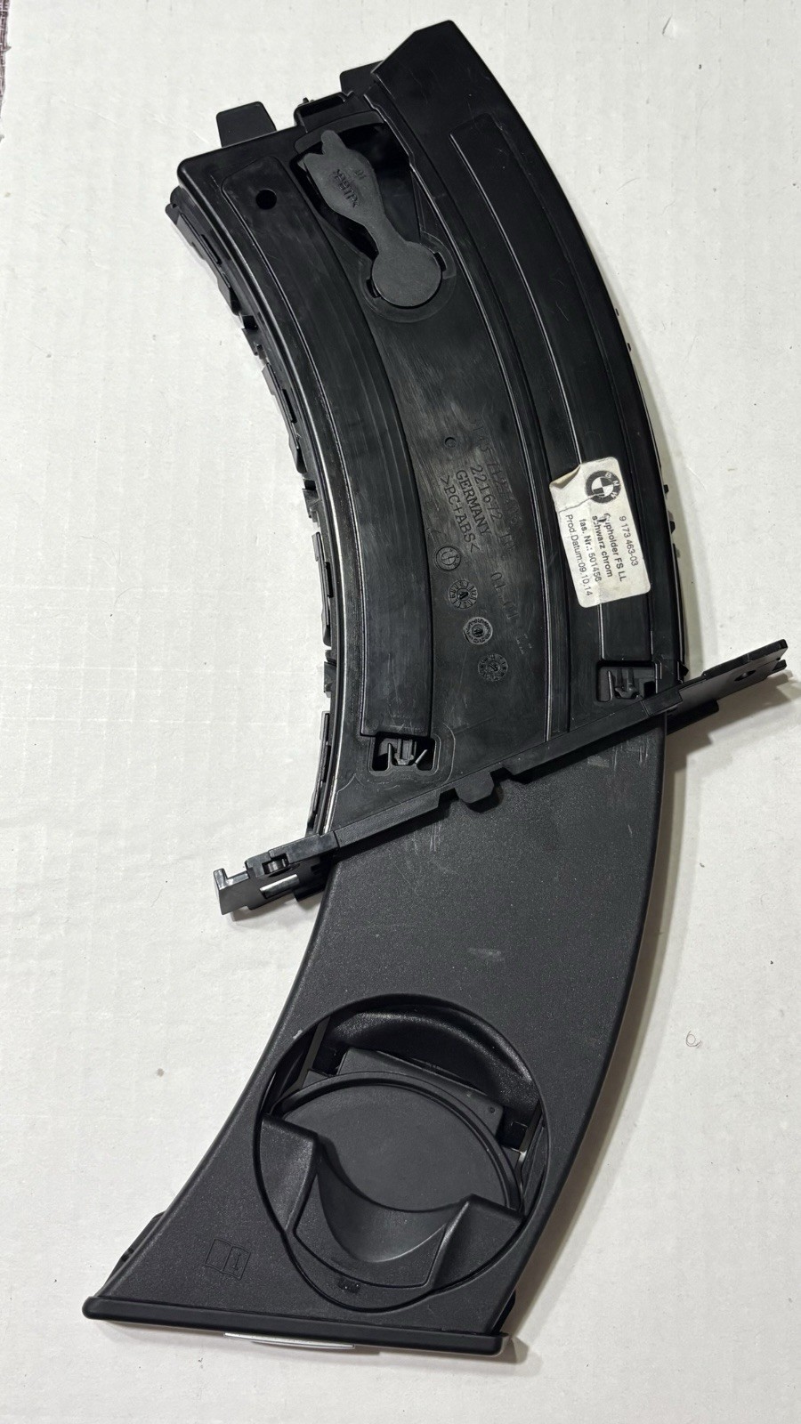 OEM BMW retractable dashboard cup holder assembly for the driver side (left-hand side of dash).