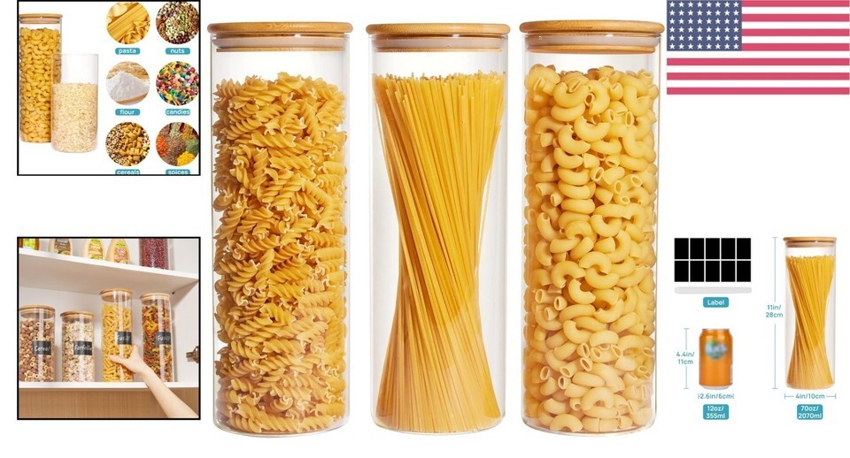 - BPA-Free 70oz Glass Canisters - 3 Pack Kitchen Storage with Bamboo Lids