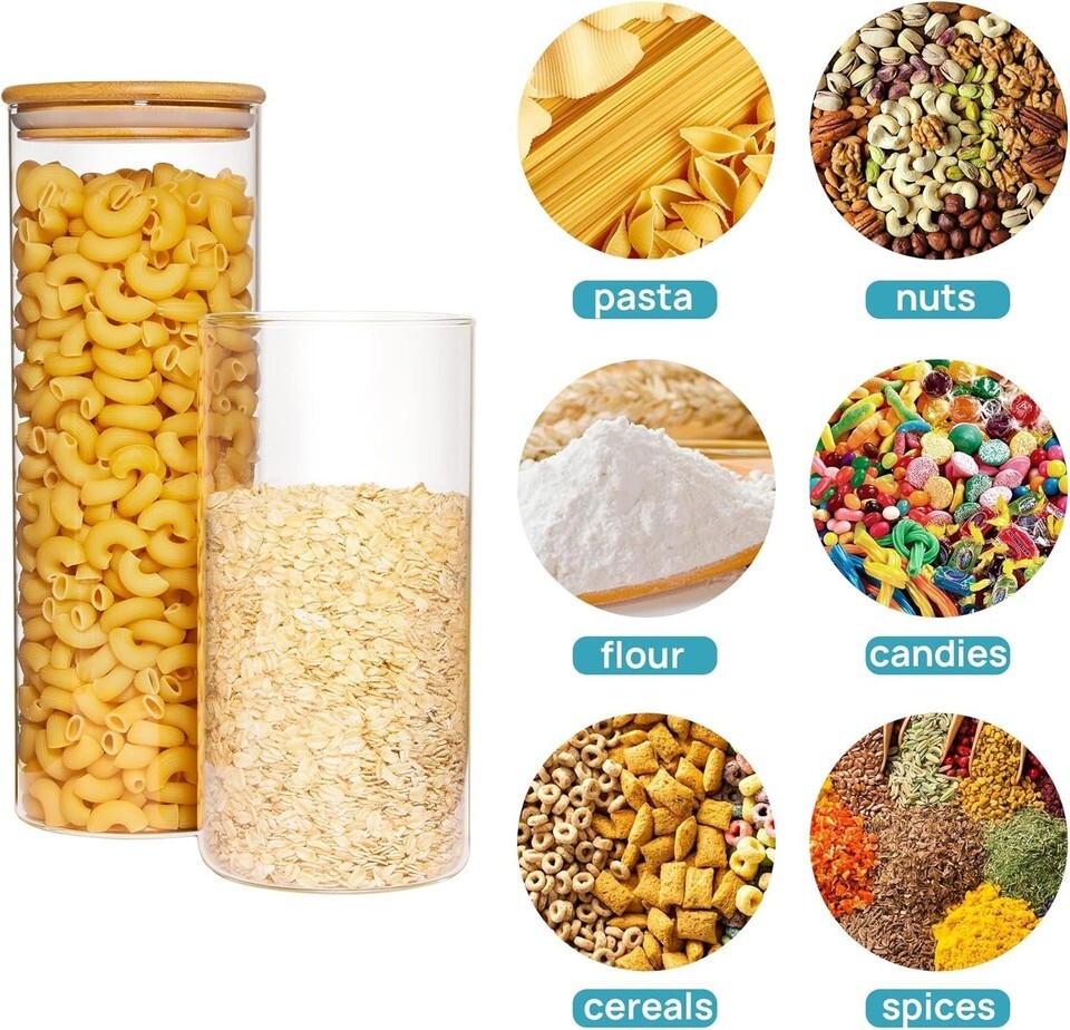 Natural Bamboo Lids: Crafted with durable silicone sealing rings, these lids ensure an airtight environment, keeping your dry goods fresh while adding a touch of natural elegance.