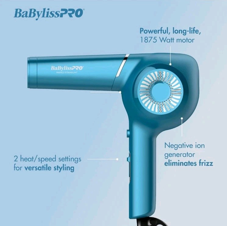 - BaBylissPro Nano Titanium Classic Professional Pistol-Grip Dryer (Blue)