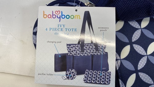 Baby Boom Traveler Ivy 4 Piece Tote Diaper Bag Navy Pattern New With Tags. Condition is New. Shipped with USPS Priority Mail.