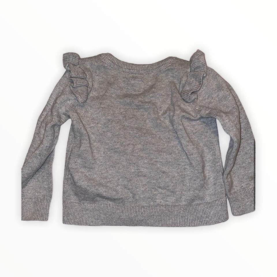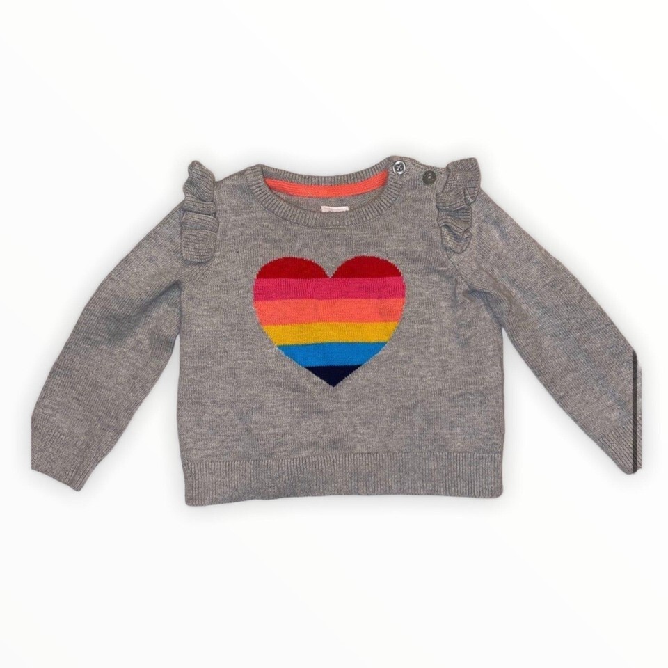 Baby Gap Gray Knit Sweater With Rainbow Heart & Ruffle Shoulders 6-12 Months