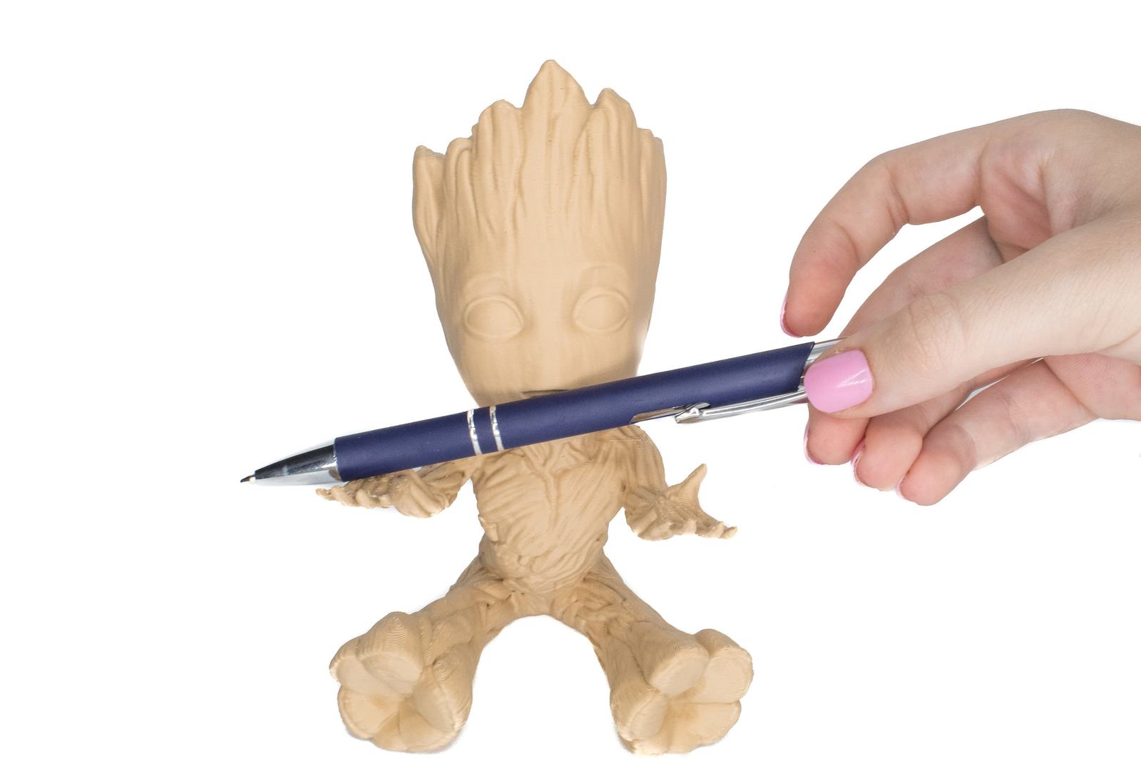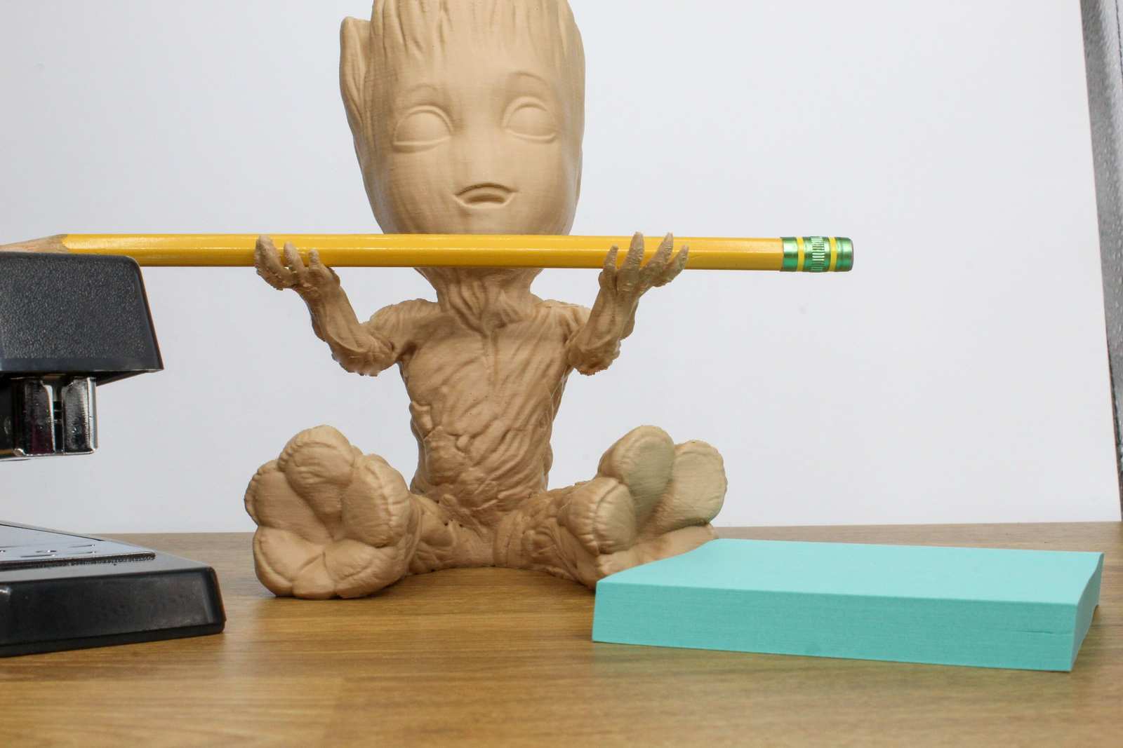 Meet your new desk buddy, Baby Groot! He's not just guarding the galaxy; he's also guarding your pens with his adorable, potted charm. Say goodbye to desk clutter and hello to a dancing Groot-ified workspace. Designed in Texas by Oop Ack