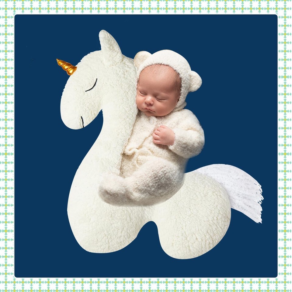 Baby Unicorn Posing Pillow Infant Photography Prop One-Horned Alpaca Photoshoot