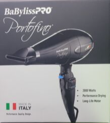 You are Buying Brand New And Factory Sealed Babyliss #BPOR1 NANO TITANIUM PORTOFINO DRYER - BLACK CON1715 Equipped with a high performance 2000-watt Italian motor, the Portofino 6600 is enhanced with Nano Titanium? technology to distribute heat evenly for optimal results. The negative ions generated by the dryer will remove any static electricity in the hair and close the cuticle for smooth, shiny results.