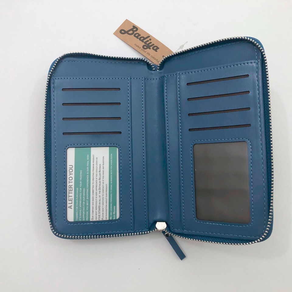***Make us an offer*** NWT, New With Tags, blue cross body, shoulder bag, clutch, cellphone holder is super compact but has lots of room for your essentials. The detachable strap lets you carry this pretty purse as a clutch. Attach the strap carry as a cross body or shoulder bag. Front pocket closes with a snap to hold your cellphone. On the back is a roomy zipper close pocket. Inside the zipp around main section are 6 credit card slots. 2 ID slots, and a large open section. Plus there 2 slip pockets under each side of the credit card slots. A really pretty purse, small but very functional. Easily holds the iPhone 13. Brand: Badiya 7.5 x 4.5 x 1.75 inches Phone pocket is 6 x .75 x 3.25 inches Strap adjustable up to 24 inches 1 large slip in pocket inside 4 shorter slip pockets inside 1 main zipper pocket 1 outside zipper pocket Silver Tone zippers SKU GG-4-02-23-049 Yes, we combine orders whenever possible. If does not combine the shipping on your orders correctly; when we combine he items and check the shipping; if it is less than the shipping charges that you paid; we will issue you a refund for the difference.