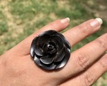 Bague declaration sculptee fleur de rose en bois d'ebene, bijoux cocktail artisanaux sculptes a la main, diametre 30-35 mm environ