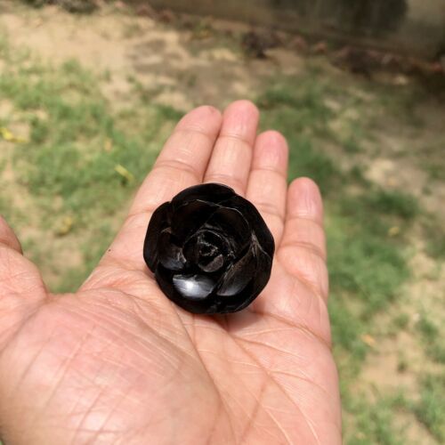 - Bague en bois d'ébène sculptée de fleurs roses à la main, diamètre 30 mm, tai...