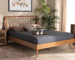 Revamp the feel of your bedroom with the elegant charm of the Baird bed. Made in Malaysia, the Baird is constructed from sturdy wood showcasing a warm walnut brown finish. The headboard features a sleek spindle design that allows light to flow more easily throughout the room and provide an open feel in tight spaces. Requiring assembly, the Baird is fitted with wood slats that eliminate the need for a box spring. Angled legs create a retro-inspired silhouette, distinguishing the Baird bed as a superb addition to the modern home.