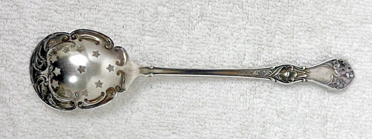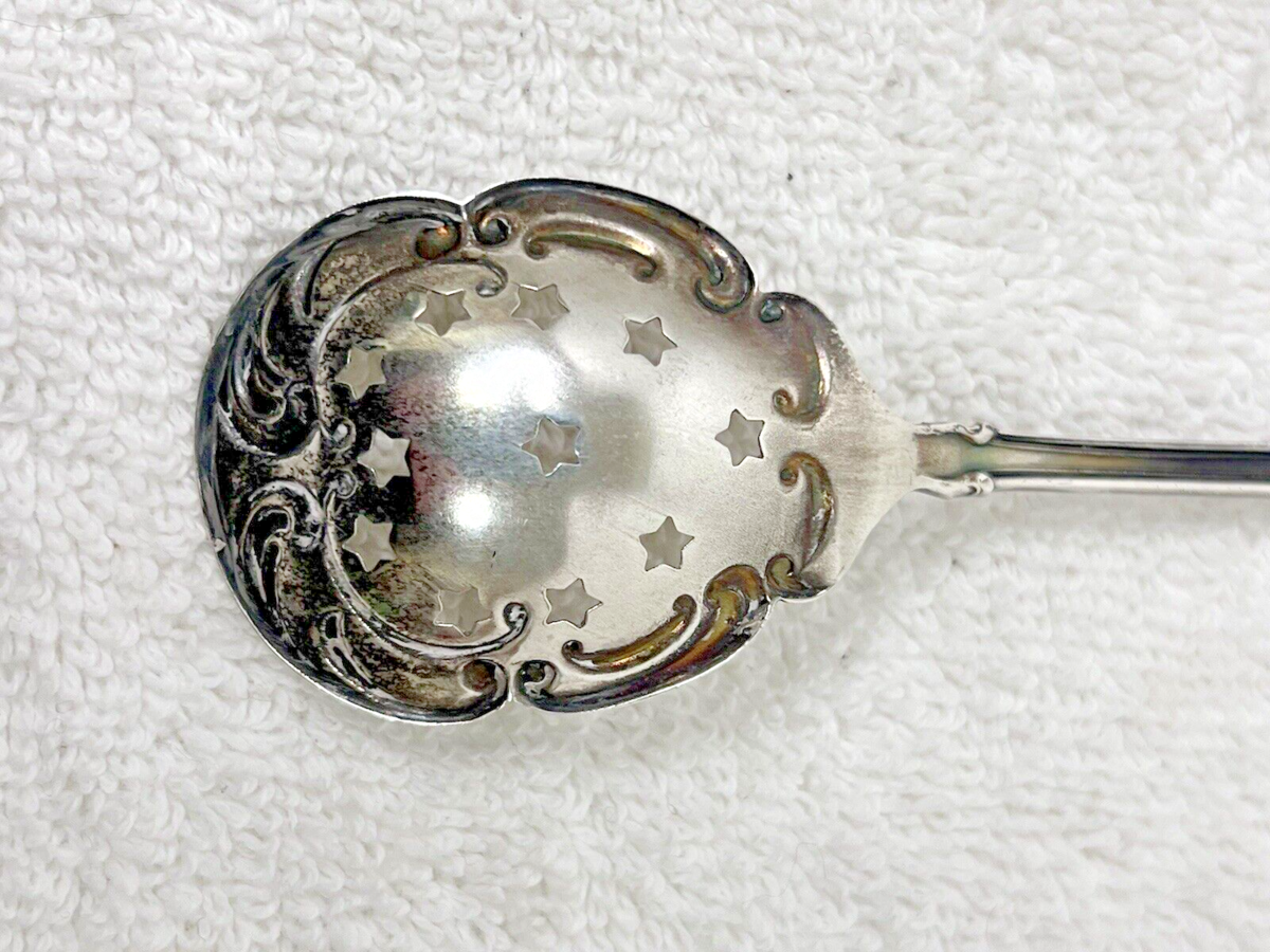 BAKER MANCHESTER Pierced Spoon Olive Sugar 6 1/4" Handle IN very nice shape no dents or marks